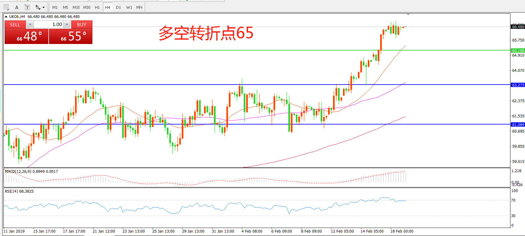 多空转折点:65.00
