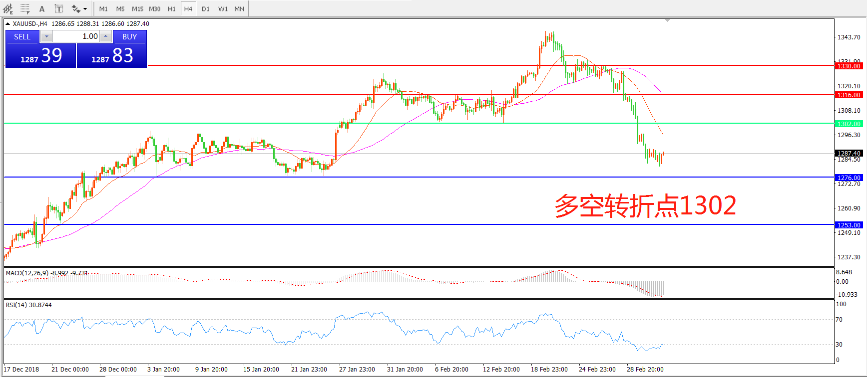 多空转折点:1302.00