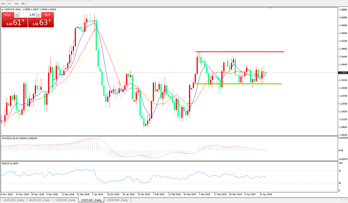 美元兑加元USDCAD    日线