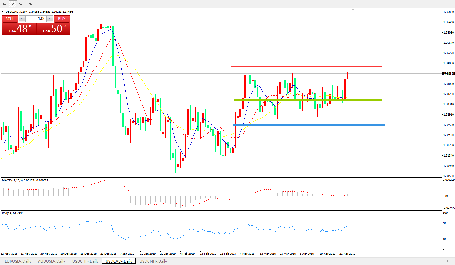 美元兑加元USDCAD    日线