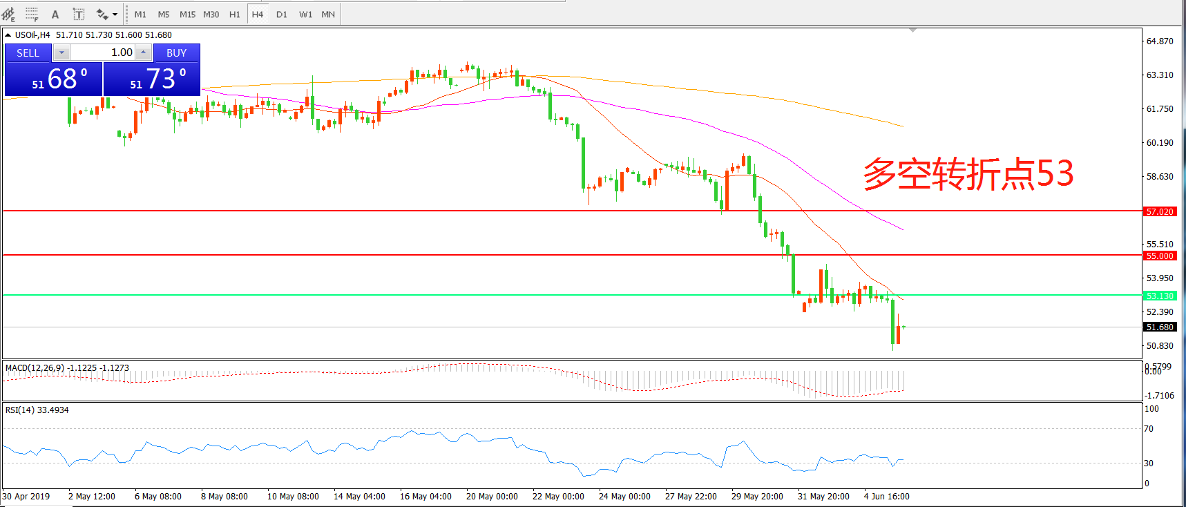 多空转折点:53.00