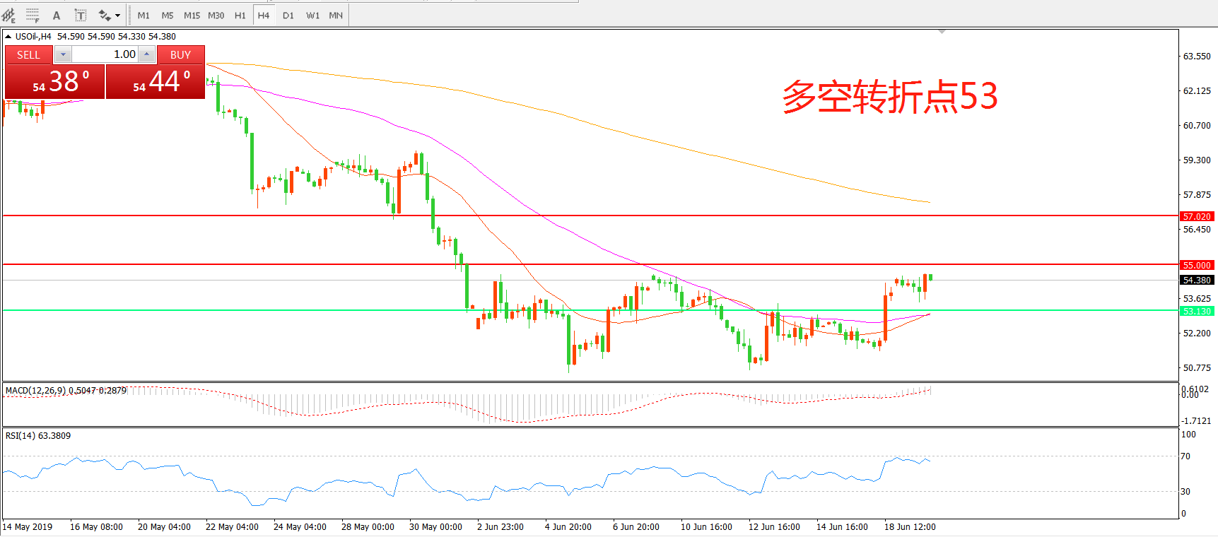 交易策略:在53.00之上看涨,目标55.00    57.00