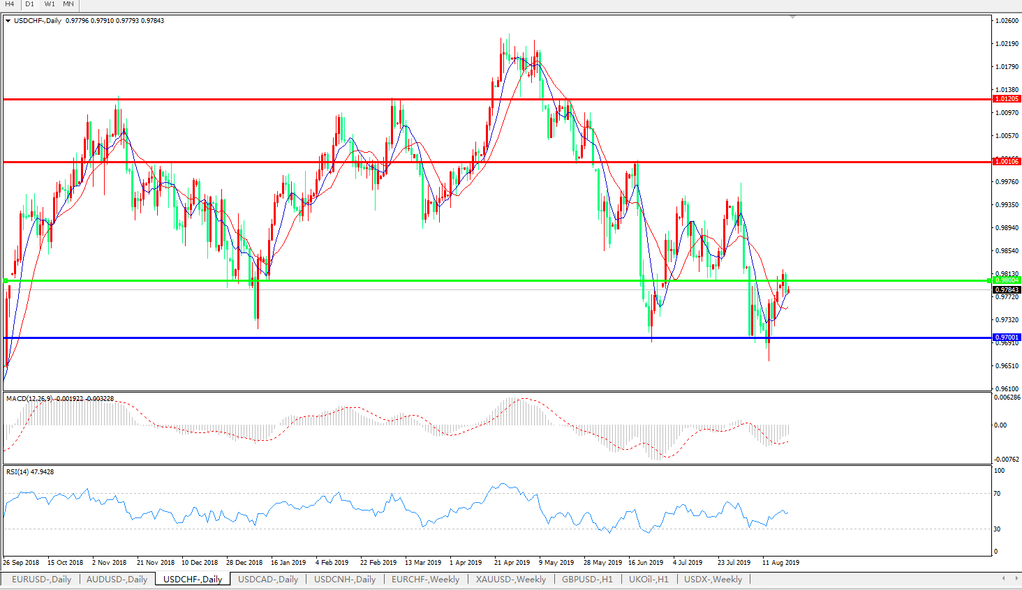 美元兑瑞郎USDCHF 日线图: