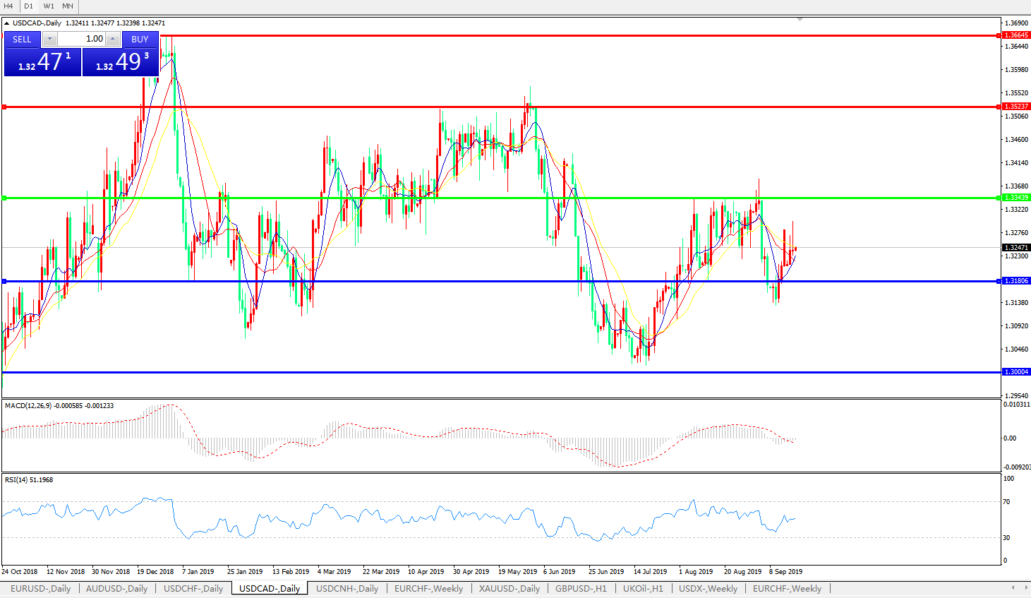 美元兑加元USDCAD    日线
