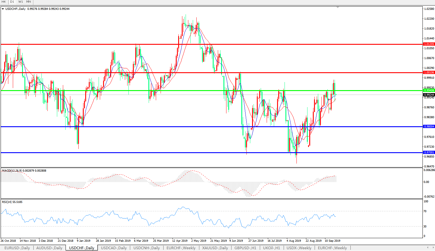 美元瑞郎USDCHF   日线图: