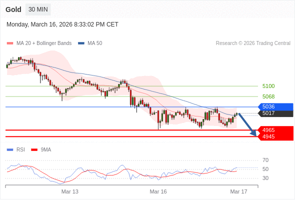 在 5036 之下,看跌,目标价位为 4965 ,然后为 4945 。