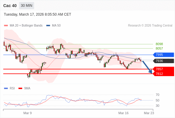 Cac 40 当日内: 没有明显变化趋势。