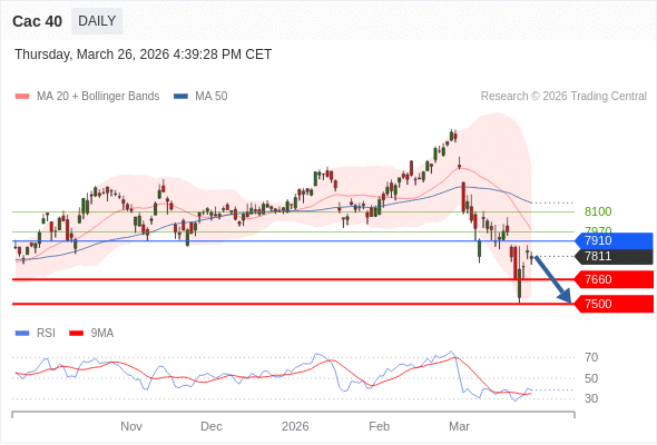 Cac 40 短线: 没有明显变化趋势。