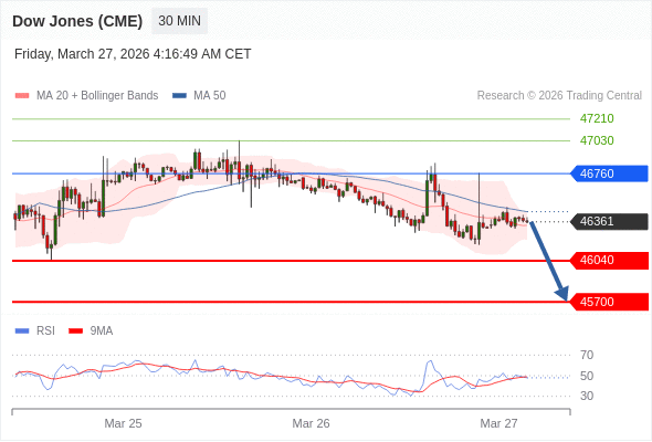 在 46760 之下,看跌,目标价位为 46040 ,然后为 45700 。