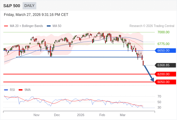 交易策略: 在 6650.00 之下,看跌,目标价位为 6200.00 ,然后为 6050.00 。