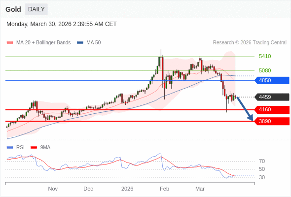 在 4850 之下,看跌,目标价位为 4160 ,然后为 3890 。