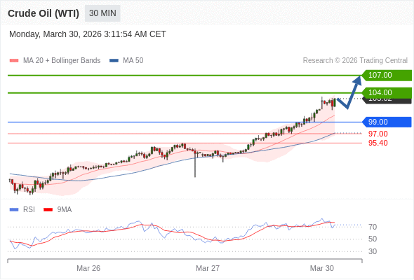 交易策略: 在 99.00 之上,看涨,目标价位为 104.00 ,然后为 107.00 。