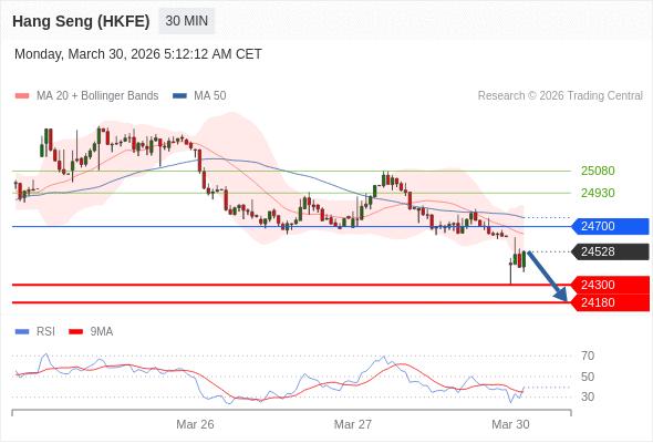 香港恒生指数期货 当日内: 短期关键阻力位在24700。