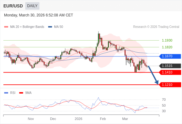 交易策略: 在 1.1670 之下,看跌,目标价位为 1.1410 ,然后为 1.1210 。