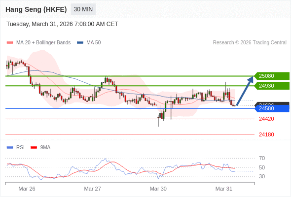 在 24580 之上,看涨,目标价位为 24930 ,然后为 25080 。