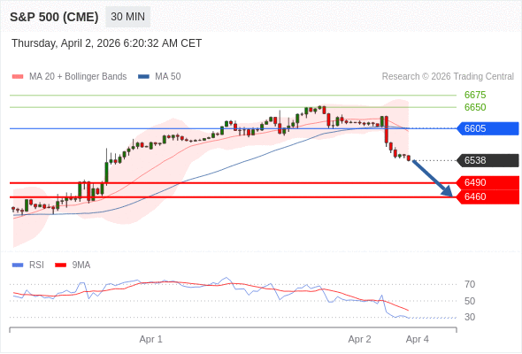 在 6605 之下,看跌,目标价位为 6490 ,然后为 6460 。