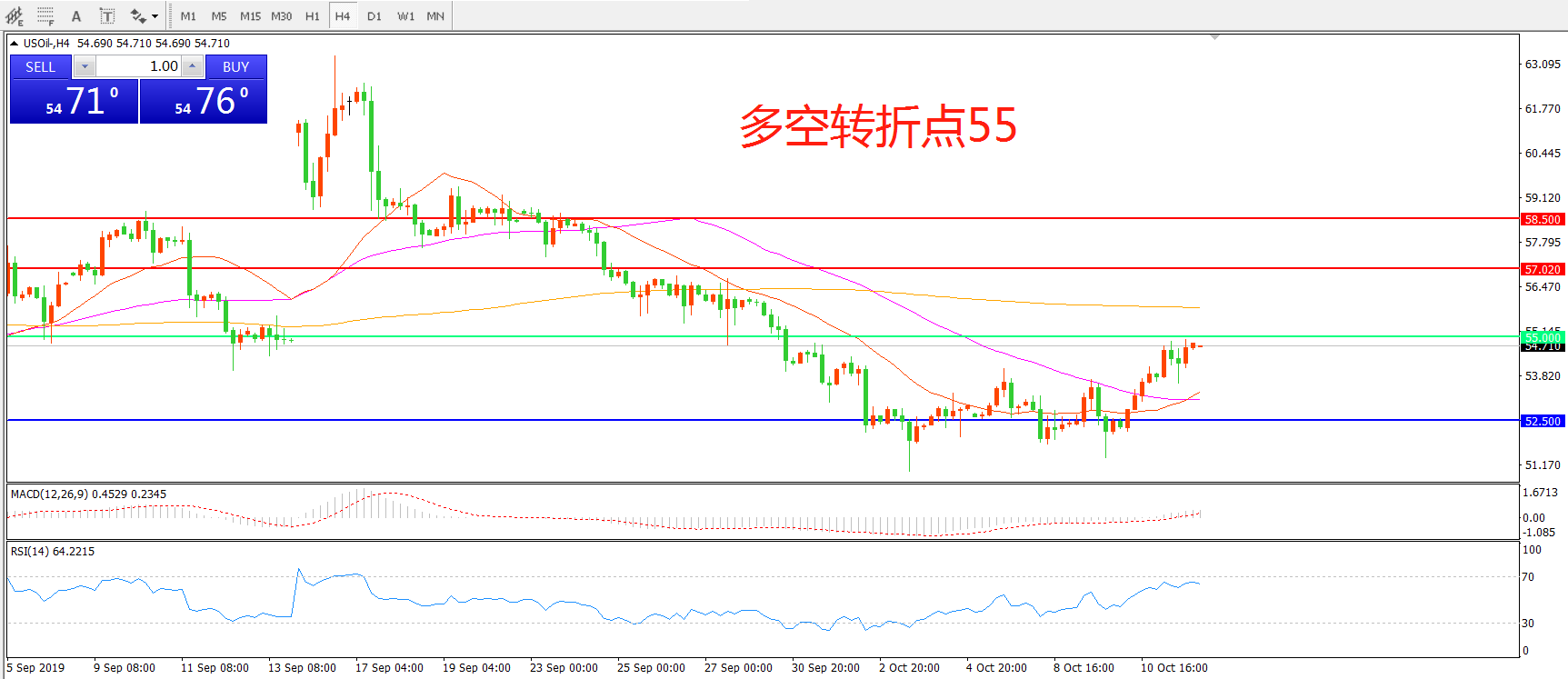 多空转折点:55.00