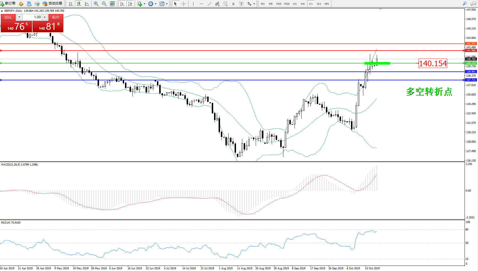 交易策略:140.154上方看涨,目标141.968、142.972