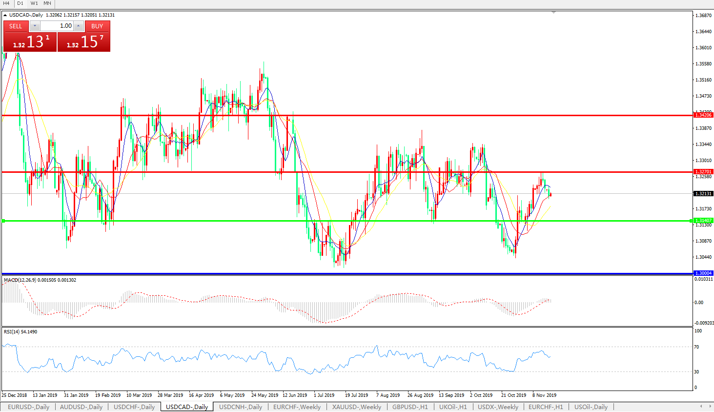 美元兑加元USDCAD    日线图: