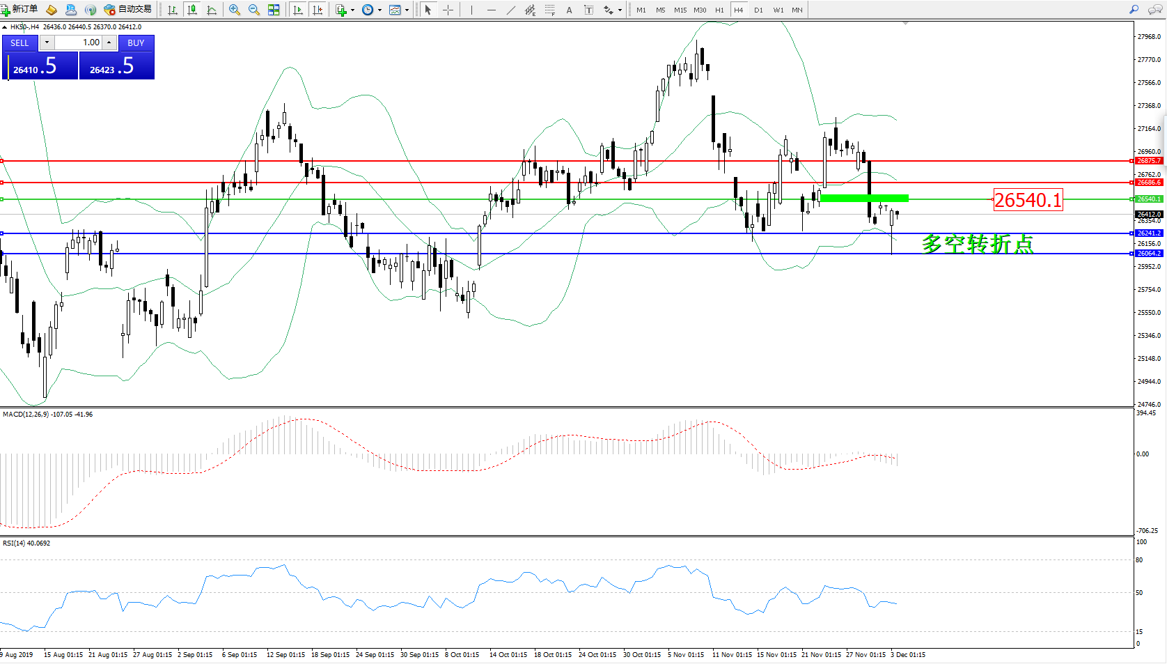 香港恒生指数123日(周二)收盘下跌53.42点,跌幅0.20%,报26391.30点;港股早上跟随外围下跌而低开,随后再扩大跌幅,最多跌381点,恒指低见26063,创出近三个月低位,再迫近26000关口。恒指维持了弱势震荡走势,成交量的萎缩也反映出投资者普遍处于观望状态。整体而言,恒指仍未摆脱弱势的状态,接下来还是要密切关注国际事态的走向。临近节日下恒指市场缺乏利好消息,加上美股回吐,恒指下试机会加大。