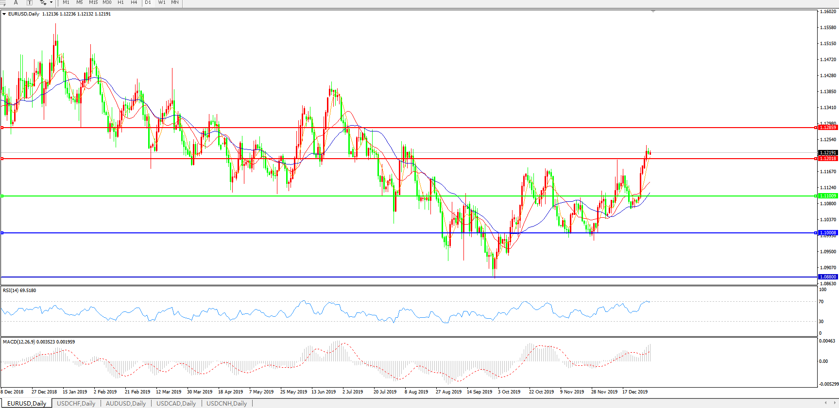 疲软的美元为全球经济动荡和贸易摩擦为标志的一年画上句号,随着全球央行采取宽松货币政策以促进增长、英国脱欧、全球主要央行维持低利率,仍牵动汇市动向。欧元兑美元延续涨势,上涨0.04%至1.1216,连续第8个交易日上涨,是两个月来最长的连连涨时间。投资者的风险偏好推动汇价于1231日升至1.1239美元的五个月高位,汇价自930日以来上涨了近3%,是自2017年第三季度以来的最佳季度表现,德国国债收益率周一攀升至5月以来的最高水平。但欧元全年仍下跌2.2%,连续第二年下挫。