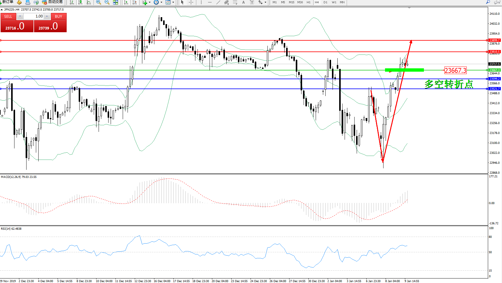 日经225指数19日(周四)收盘上涨515.74点,涨幅2.22%,报23720.50点。特朗普发表讲话称,伊朗的袭击中没有美国人受到伤害,伊朗似乎已收手,克制了对美国目标发动更多的袭击。同时伊朗方面也表示伊朗不想让冲突升级或挑起战争,周三凌晨的空袭“结束了”对上周五狙杀苏莱马尼的报复。这令市场押注美伊将不会扩大对立,这使得市场的担忧情绪迅速回落。