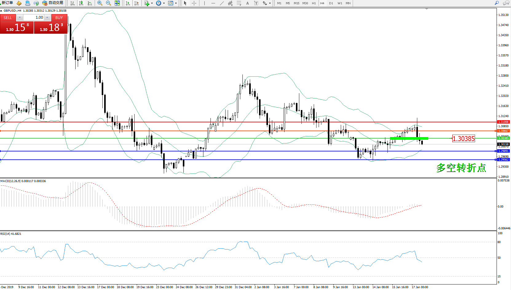交易策略:1.30385下方看跌,目标1.298911.29562