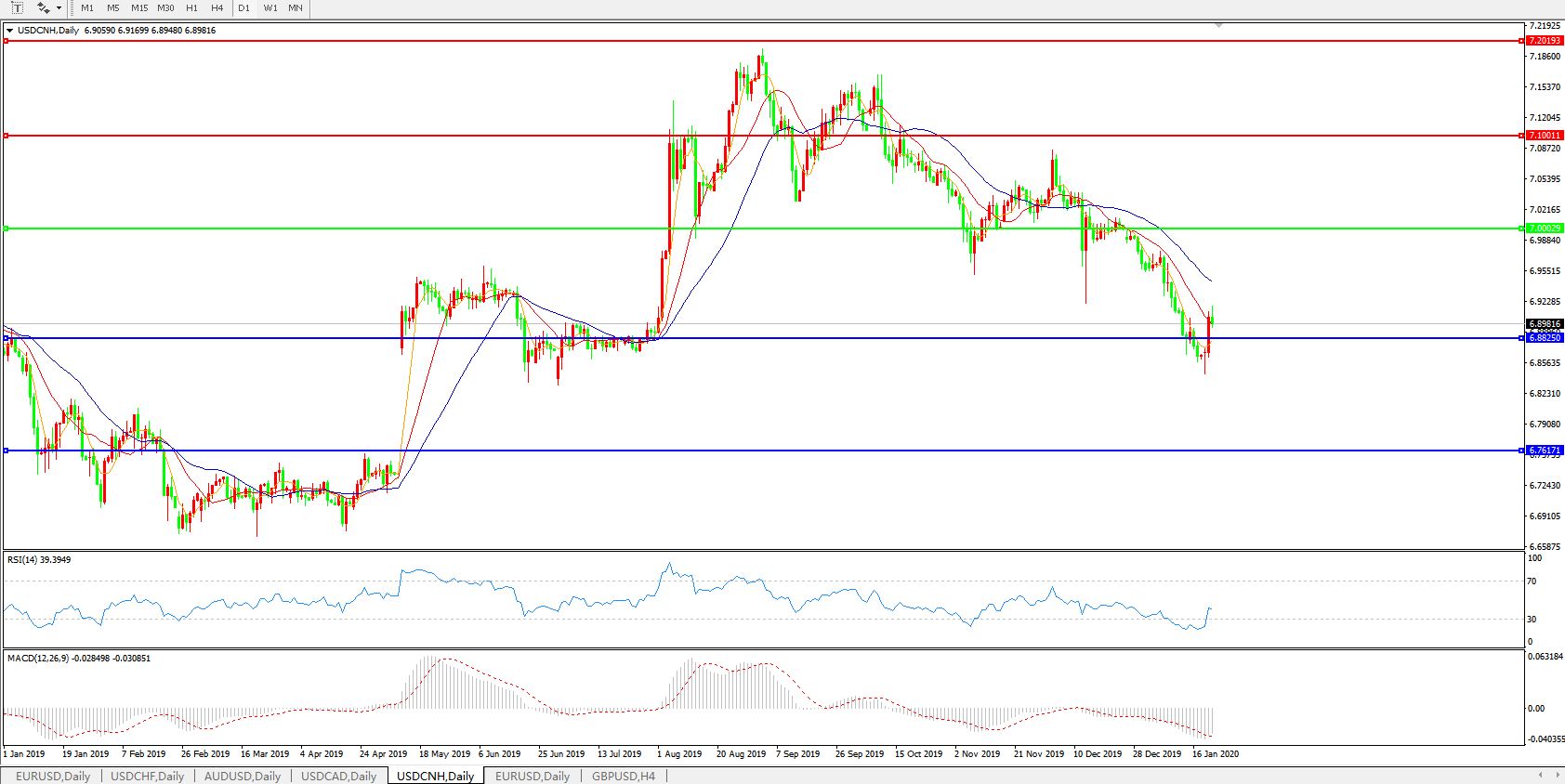 交易策略: 在7.0000之下,看跌,目标价位为6.8820,然后为6.7600。