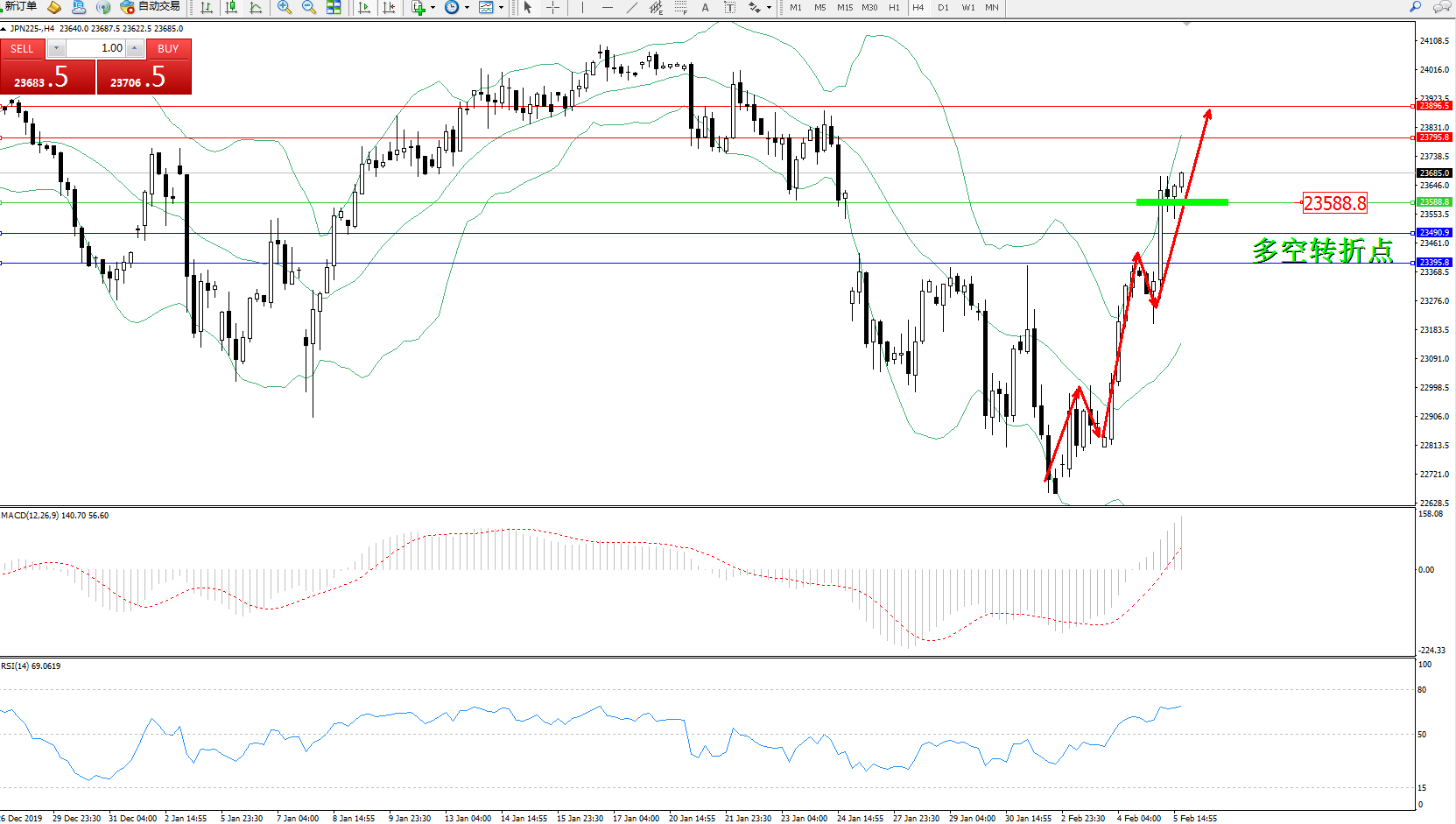 技术点评:低位多头动力强势拉升上行中,延续布林带指标上轨持续上攻,布林带指标呈张口走势中,且多头动力未有止步迹象,MACD指标处于多头区域强势拉升上扬,RSI指标处于多头区域持续震荡上行;