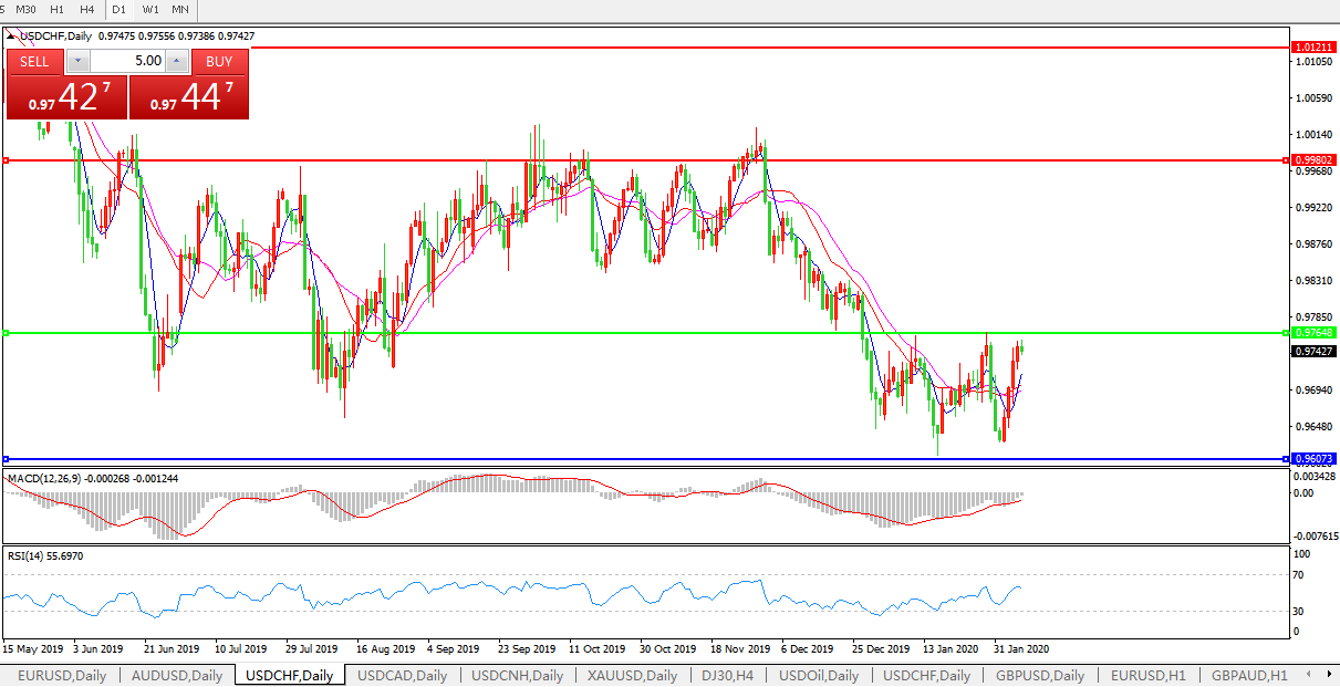 美元兑瑞郎USDCHF 日线图: