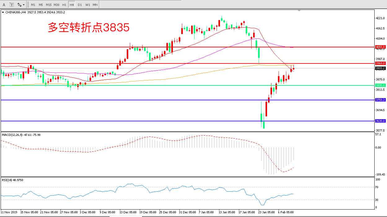 沪深300  CHINA 300   4小时图