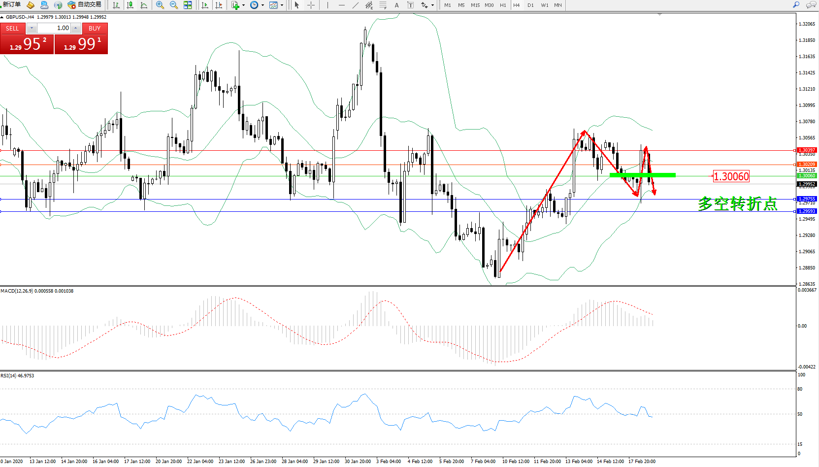 交易策略:1.30060下方看跌,目标1.297551.29593