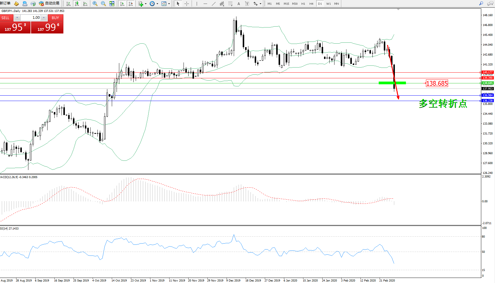 交易策略:138.685下方看跌,目标136.984136.238