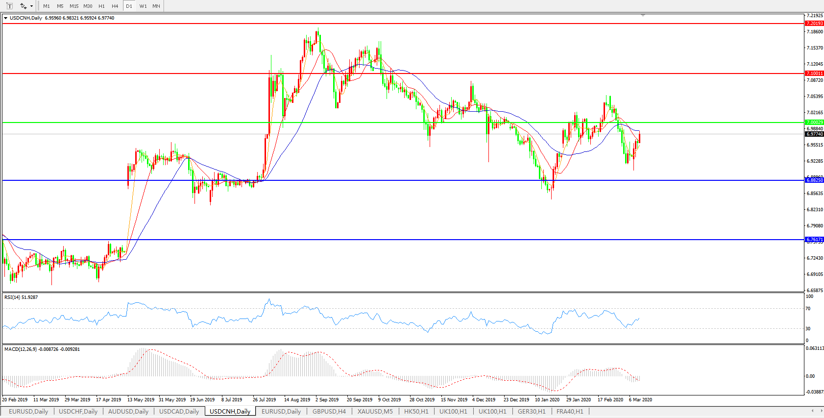 美元兑人民币USDCNH 日线图: