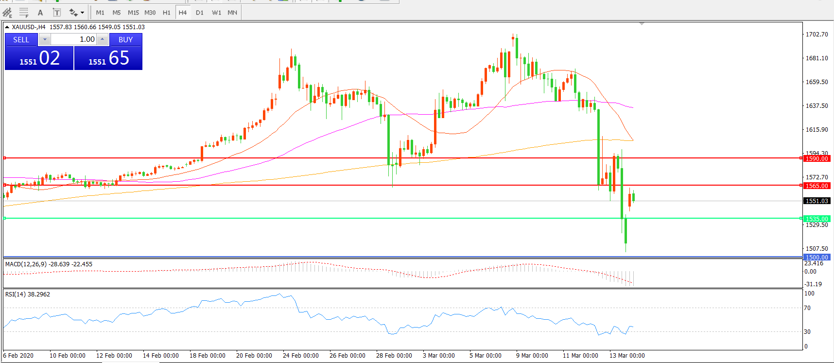 现货黄金XAU/USD    4小时图