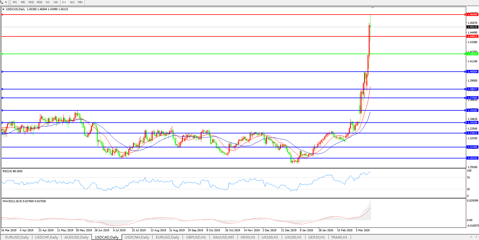 美元兑加元USDCAD 日线图:
