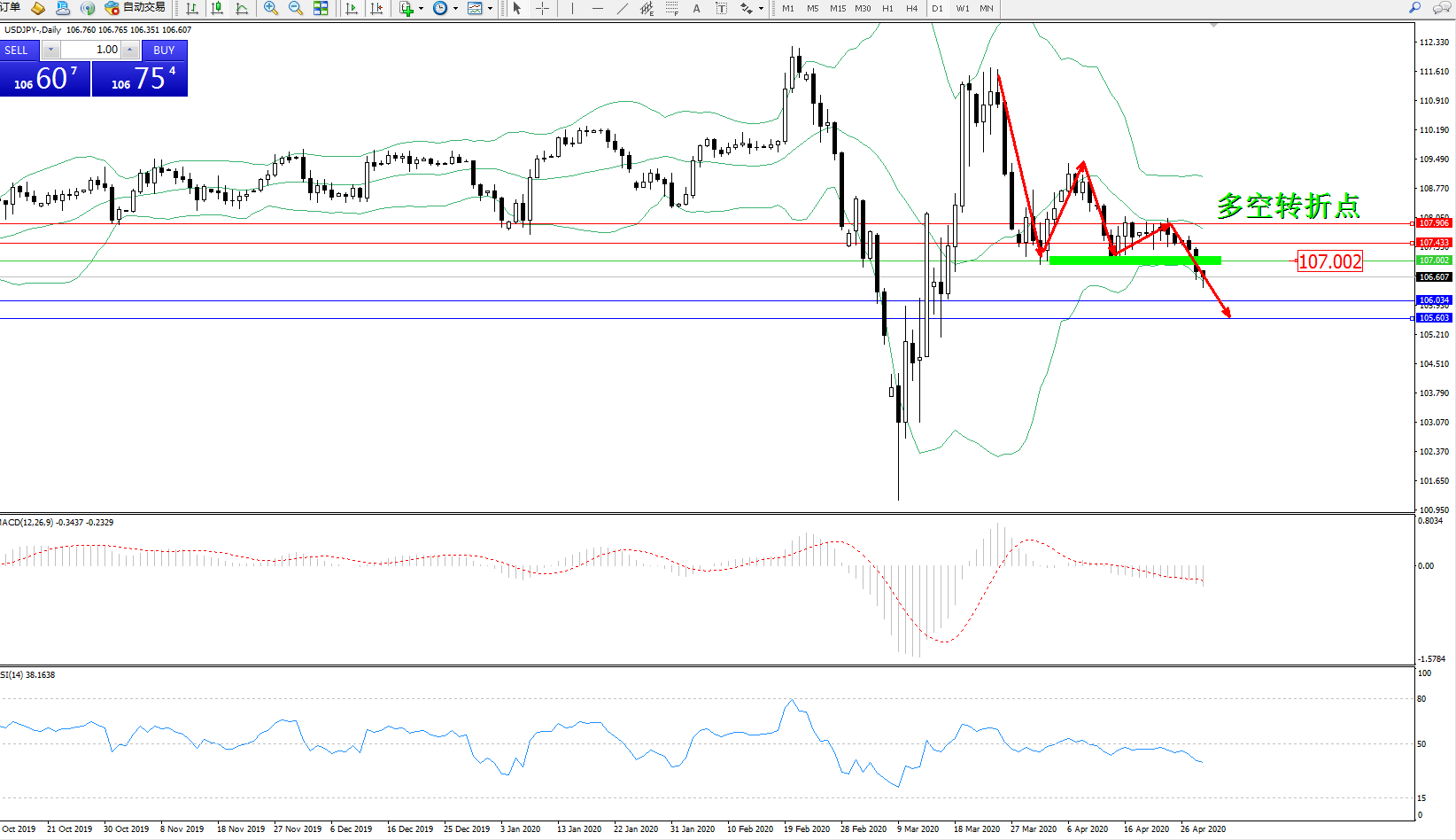 交易策略:107.002下方看跌,目标106.034105.603