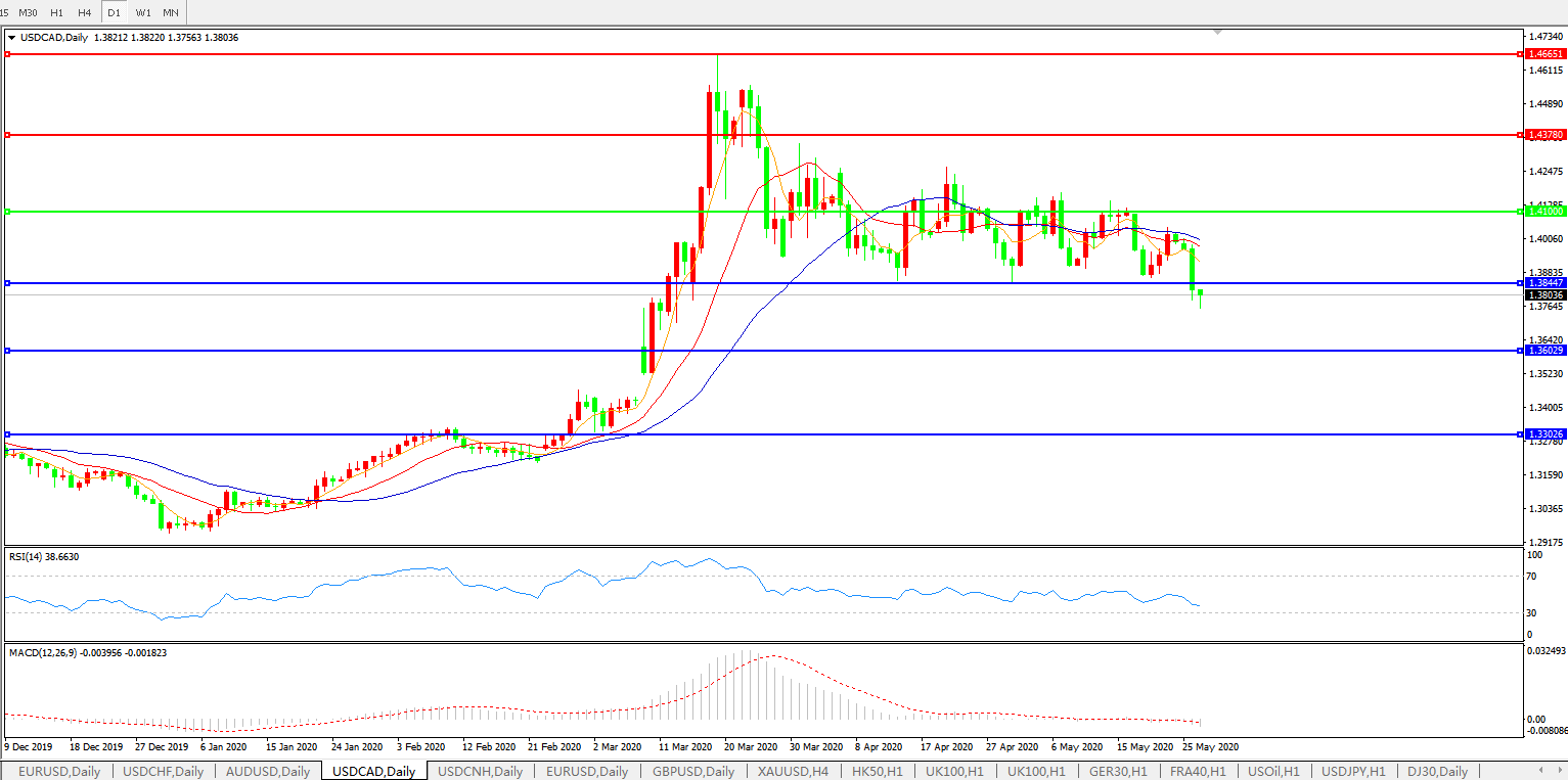 技术面简析:日线图均线发散下行,汇价大跌击穿第一支撑后延续弱势,MACD走弱且量能0轴下微放量,RSI持续走弱,预计短期汇价将进一步走低。