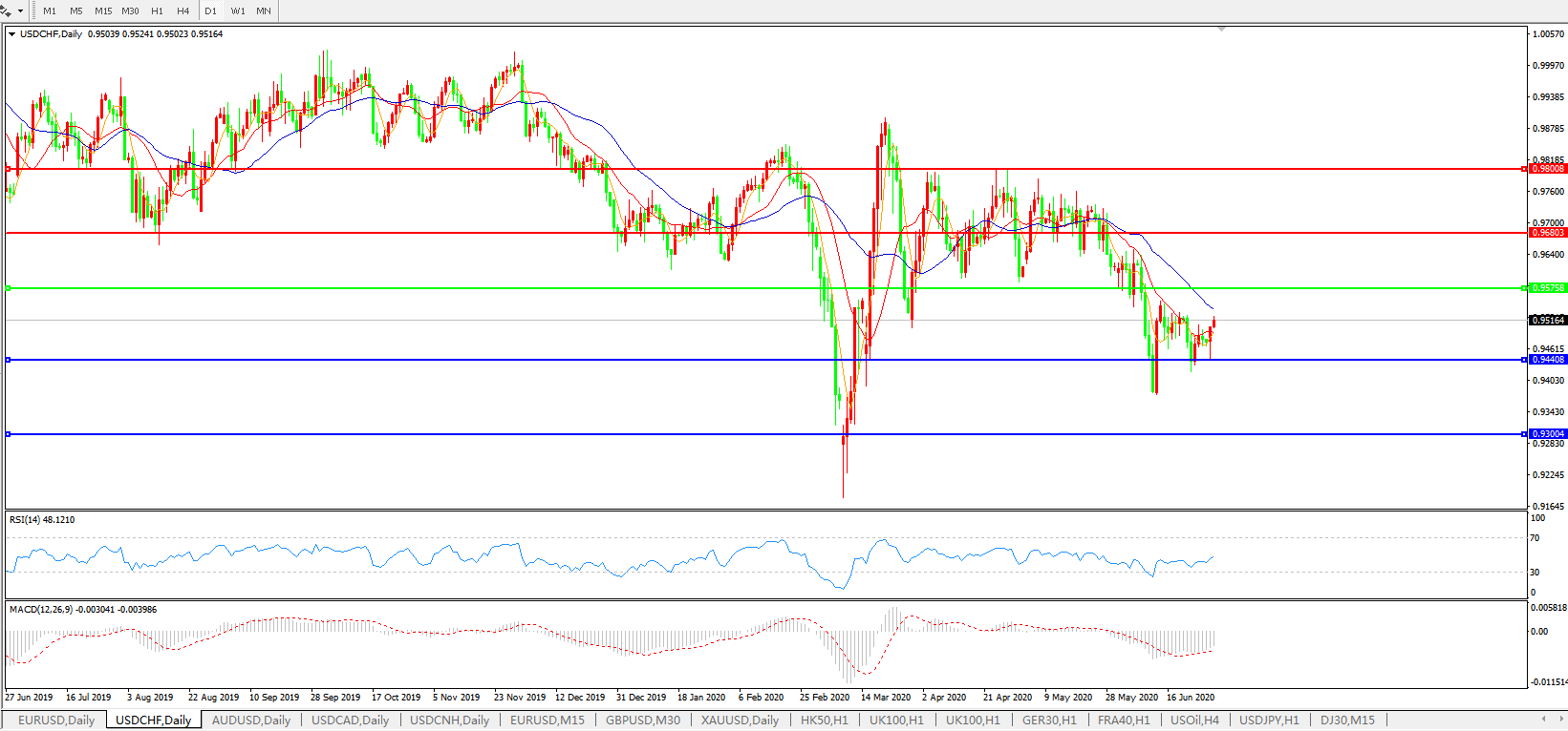 美元兑瑞郎USDCHF 日线图: