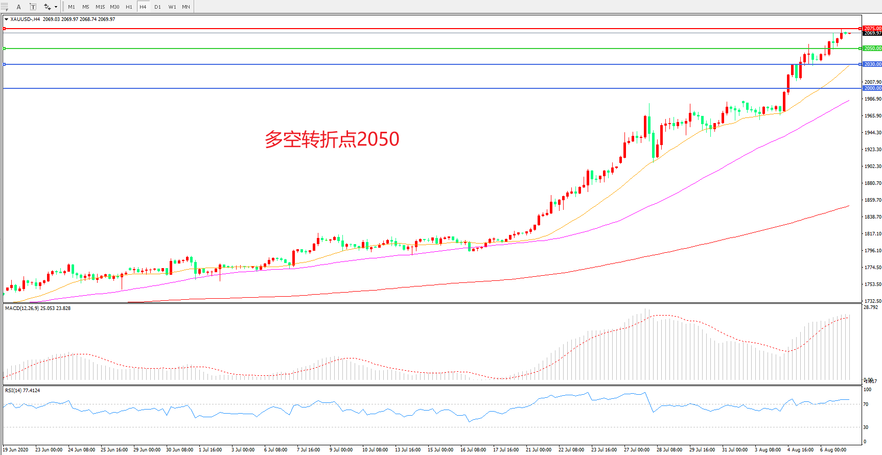 多空转折点:2050.00