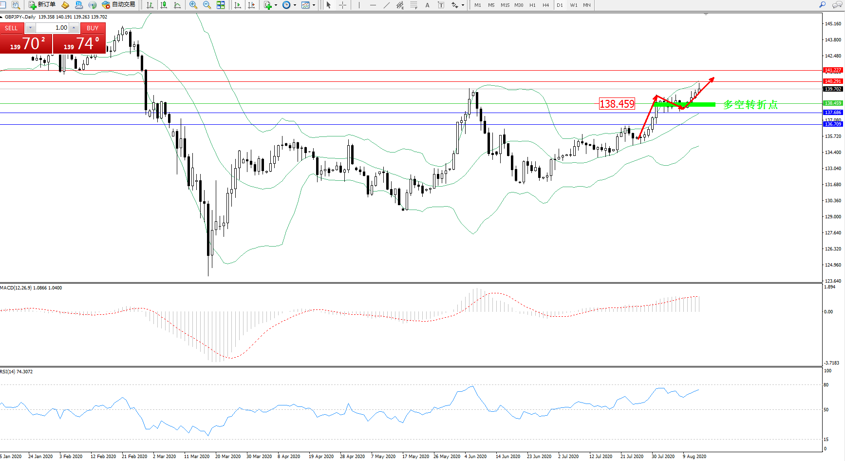 交易策略:138.459上方看涨,目标140.291、141.227