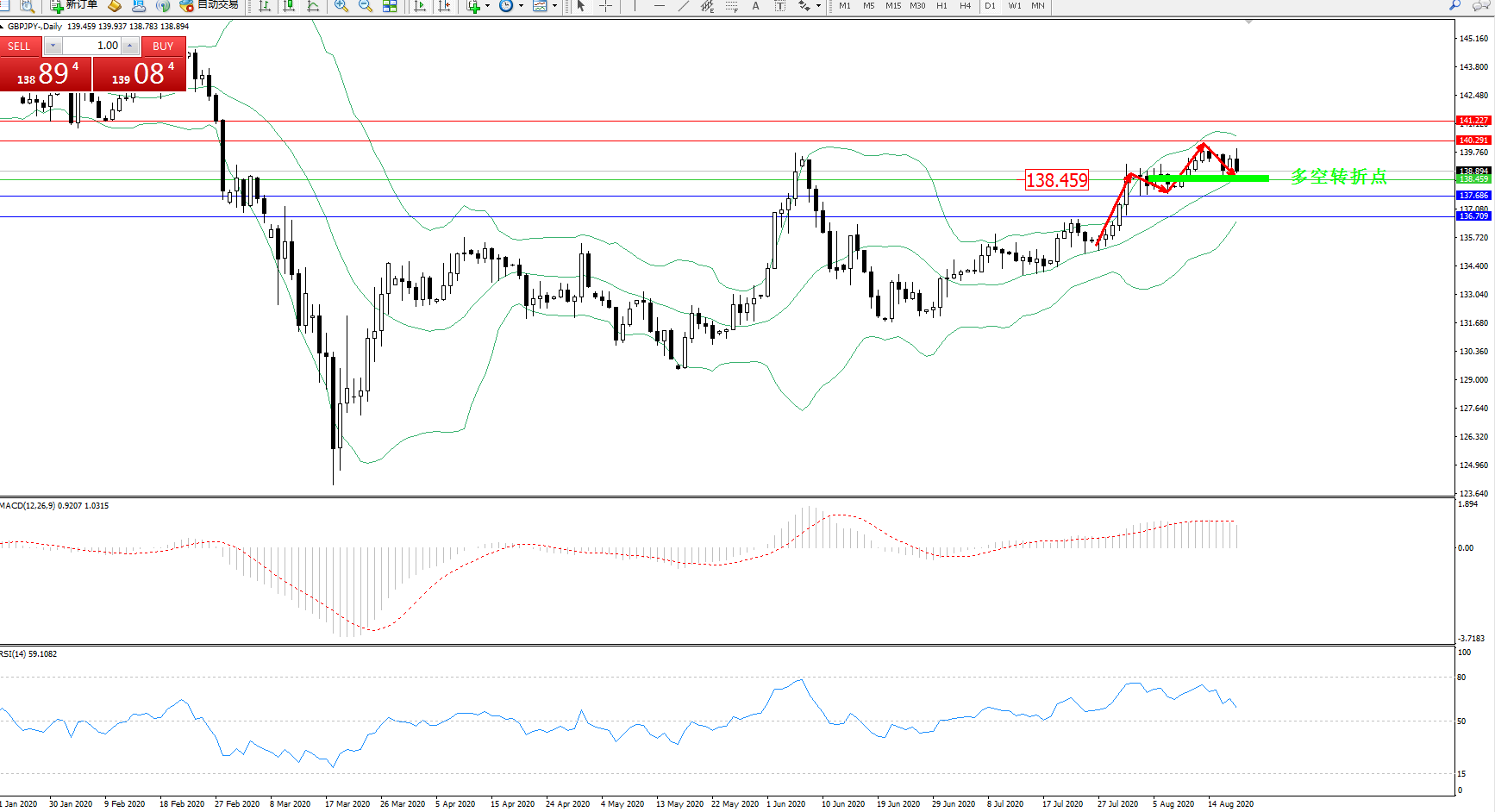 交易策略:138.459上方看涨,目标140.291、141.227