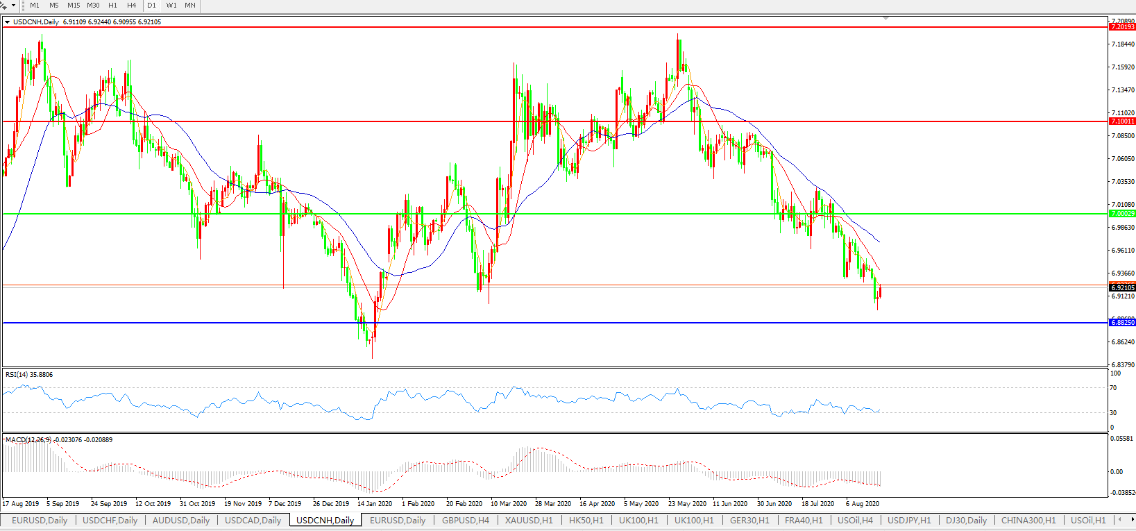 美元兑人民币USDCNH 日线图: