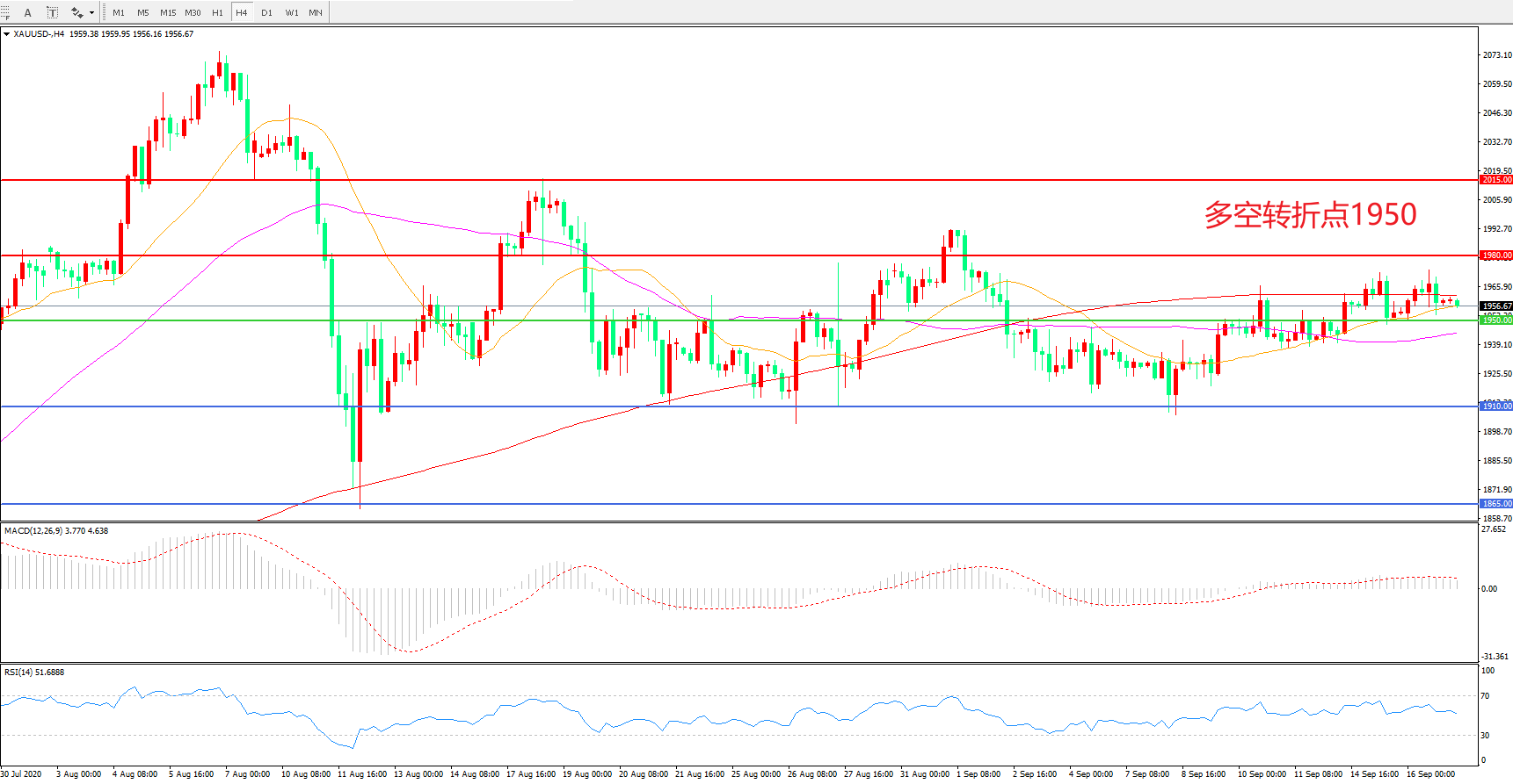 现货黄金XAU/USD    4小时图