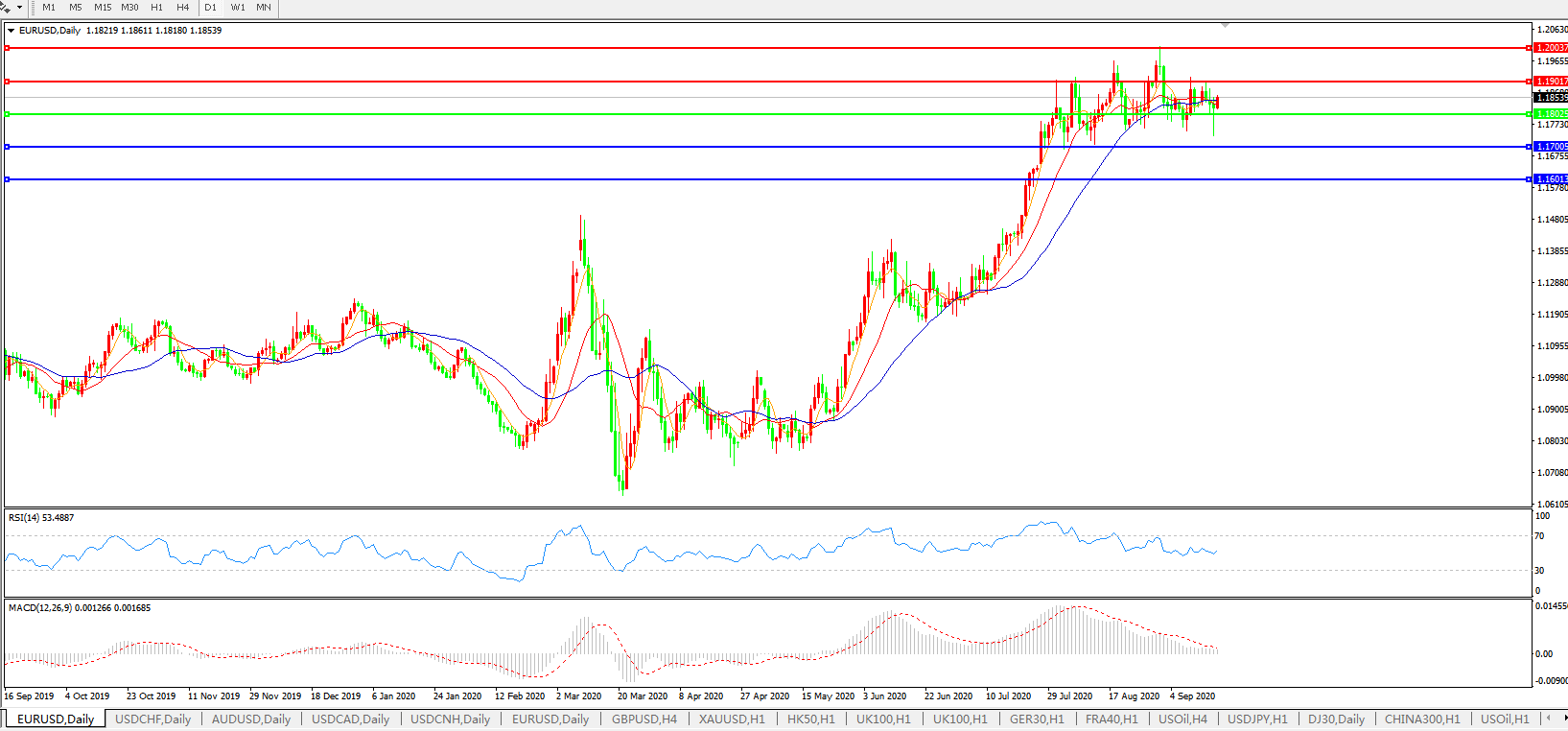 备选策略:1.1800下方看跌,目标1.1700、1.1600