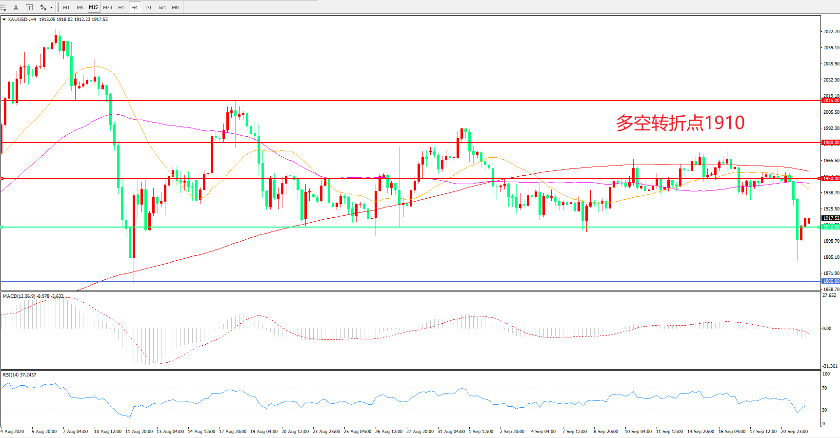 交易策略:在1910.00之上看涨,目标1950.00   1980.00