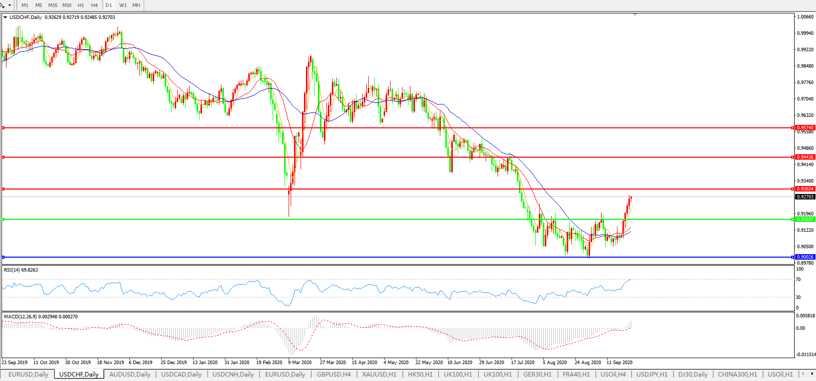 交易策略:0.9170上方看涨,目标0.9300、0.9440