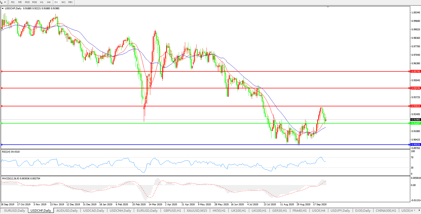 交易策略:0.9170上方看涨,目标0.9300、0.9440