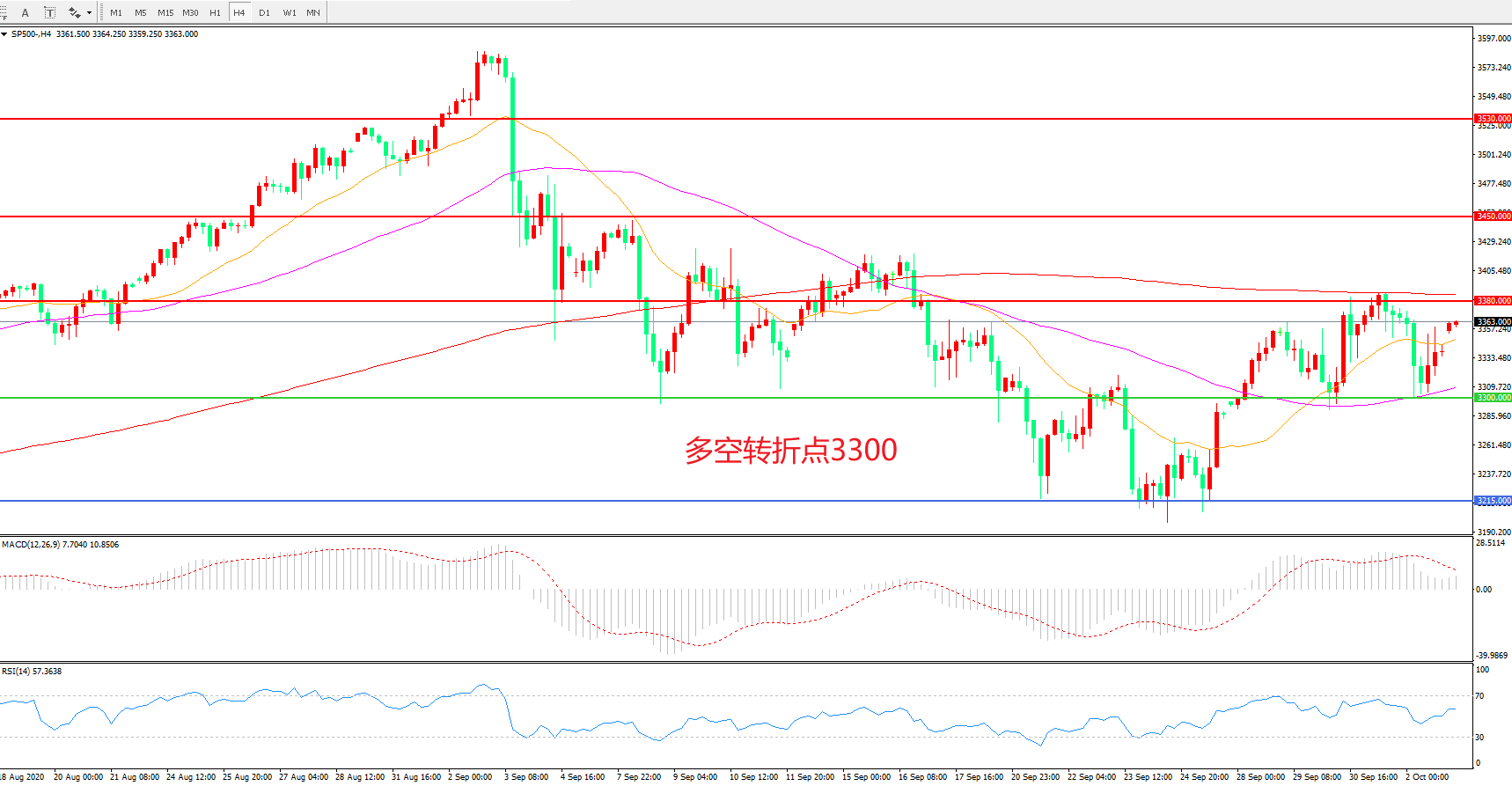 在经济数据方面,9月就业报告差于预期也打压了市场情绪,就业市场复苏放缓是迄今为止表明美国经济进入第四季挂上低速档的最强劲信号,如果未来就业增长放缓幅度超过预期,会让如果投资者越发担心未来的经济前景,目前市场也在期待美国国会新一轮刺激法案的出台,如果两党不能在近期就新一轮经济刺激计划达成一致,将可能导致美国第四季度经济再度下滑。