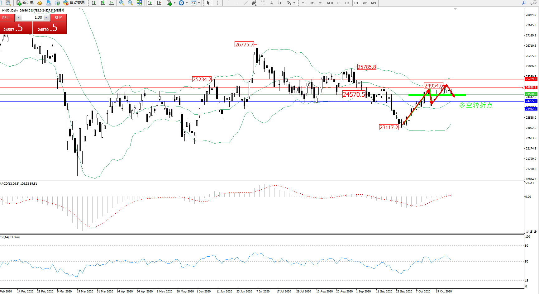 恒指HK50 ——日K线图显示: